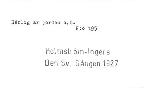 //// Härlig är jorden a,b. //// N:o 195 //// Holmströrn-ingers //// Oen Sv. Sången 1927 ////