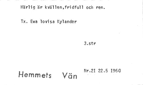 //// Härlig är kvällen,fridfull och ren. Tx. Ewa lovisa Kylander //// 3.str //// Nr.2I 22.5 1964 //// Hemmets Vän ////