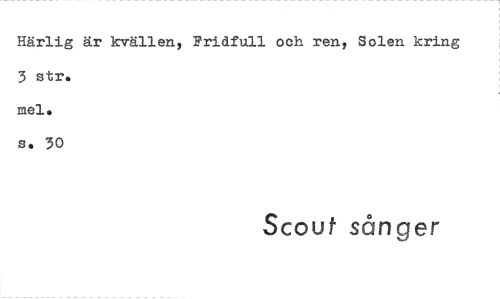 //// Härlig är kvällen, Fridfull och ren, Solen kring 3 str. //// inel. //// s. 30 //// Scout sånger ////