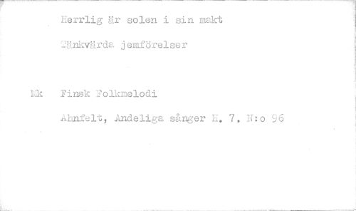 //// Herrlia är solen i sin makt 2änkvärda jemförelser //// Lik Finsk 2olkmelodi //// Lhnfelt, Andeliga sånger E. 7. 11:o ////