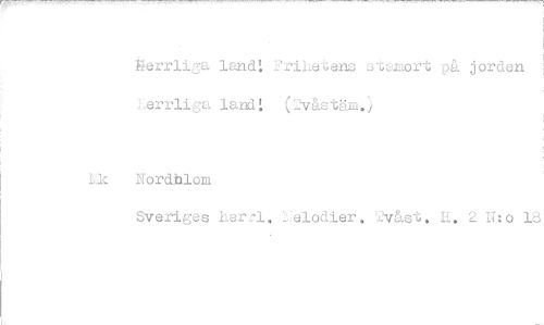 //// FerriiZa land! :riLete 3-cuaort på jorden Lerrliga land! (2våstäm.) //// Lic Nordblom //// Sveriges her21, _elodier, Ymås. E. 2 U:o 13 ////