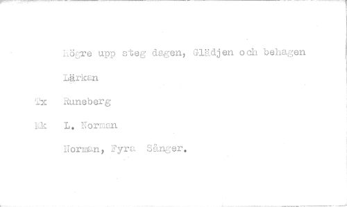 //// Iögre upp steg dagen, Glädjen och behagen Lärkan //// 'JJc Runeberg //// hk L. Xorman //// Norman, Fyra Sånger. ////