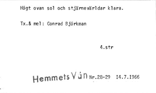 //// Högt ovan sol och stjärnevärldar klara. Tx.& mel: Conrad Björkman //// 4.str //// Hemmets V n Nr.28-29 14.7.1966 ////