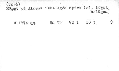//// (Uppå) //// Högt på Alpens isbelagda spira (el. högst //// belägna) //// E 1874 clq Ra 33 90 t 80 t 9 ////