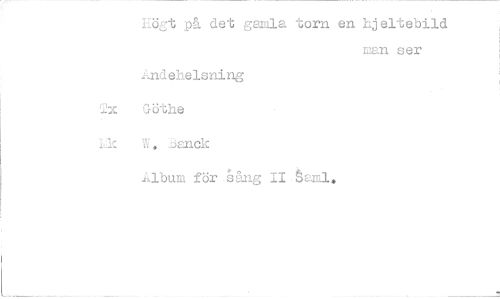 //// Högt på det gamla torn en hjeltebild //// man ser //// 2mdehelsning //// 2a Göthe //// Lk W. äanck //// 1bum för ång II //// • ////