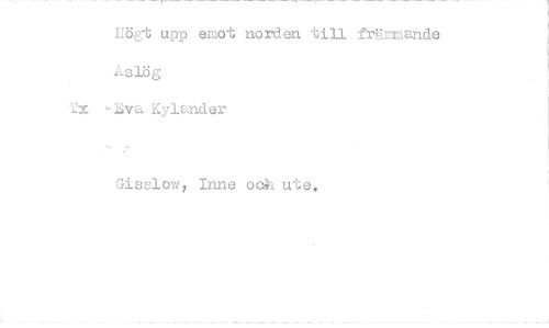 //// Lögt upp emot norden tiLl främnande Aslög //// -Iva Kylender //// Gisslow, Inne oo ute. ////