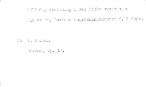 //// Lölj dig drottning i den mjuka svepnirc'en //// Duo ur Jr. Lovisas -oerafningskantat f. 2 3opr. //// ik L. Norman Norman, Op. 17. ////