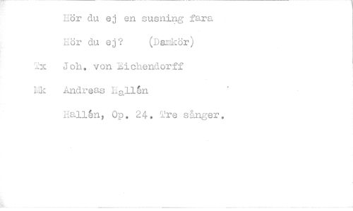 //// Lör du ej en susning fara //// Hör du ej? (Damkör) //// lx Joh. von Eichendorff //// 11,z Andreas hallån //// Hall6n, Op. 24. Slre sånger. ////