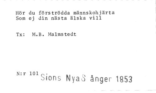 //// Hör du förströdda männskohjärta Som ej din nästa älska vill //// Tx: M.B. Malmstedt //// N:r 101 . //// Stons Nya ånger 1953 ////