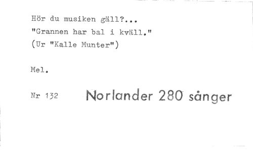 //// Hör du musiken gäll?... "Grannen har bal i kväll." (Ur "Kalle Munter") //// Mel. //// Nr 132 Norlander 280 sånger ////