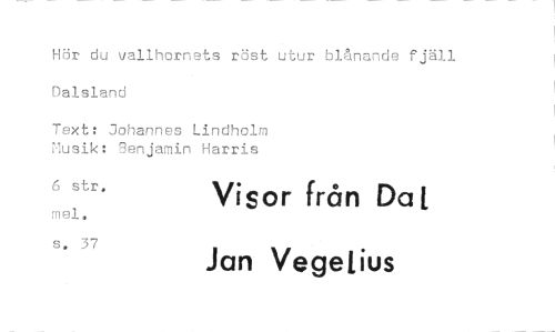 //// Hör du vallhornets röst utur blånande fjäll Dalsland //// Text: Johannes Lindholm Musik: 9enjamin Harris //// 6 str. Visor från Da t //// mal. //// s. 37 Jan Vegetius ////