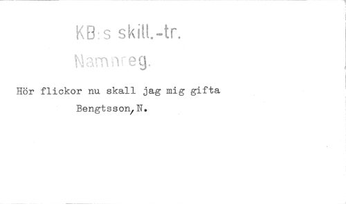//// KB:s skilt.-tr. //// Hör flickor nu skall jag mig gifta Bengtsson/N. ////