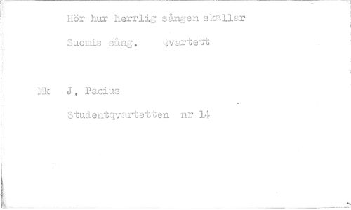 //// Hör hur herrlig sången skallar Suomi s säng. ,4vartett //// Hk J. Pacius Studentvrtetten nr 14 ////