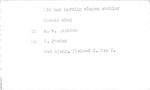 //// Iför hur herrlig sången skallar Suomis sång //// 27... E. v. ,.:,Yanten //// F. Pacius //// Det sjung, Finland 1. T:o 2. ////