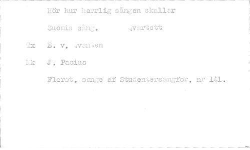 //// Lör hur ha:J:1'11g sången skallEr //// Suorås San, //// ,,r2).-Jen //// Lk J, Pacius //// F1ers-4 scnje af Studentersanjfor. nr 141. ////