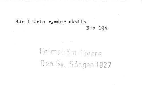//// Hör i fria rymder skalla //// N: o 194 //// Oe Sv. Sången 192 7 ////