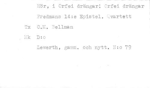 //// Hör, i Orfei drängar! Orfei drängar //// Fredmans 14:e Epistel. Cvartett Tx C.I. Fellman //// Ifk D:o //// Lewerth, gamen. och nytt. U:o 79 ////