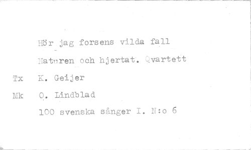 //// Hör jag forsens vilda fall Tattaren och hjertat Cvartett Tx K. Geijer //// Mk 0. Lindblad //// 100 svenska sånger I. N:o 6 ////