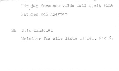 //// Hör jag forssens vilda fall gjuta sina Natnren och hjertat //// Lic Otto Lindblad //// I:elodier fra alle lande II Del. N:o 6. ////