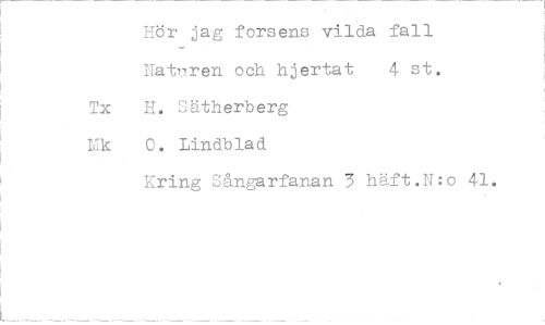 //// Hör jag forsens vilda fall Natnren och hjertat 4 st. //// Tx H. Sätherberg //// Yk 0. Lindblad //// Kring Sångarfanan 3 häft.N:o 41. ////