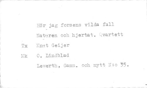 //// Hör jag forsens vilda fall Naturen och hjertat. (.vantett Tx Knut Geijer //// lik 0. Lindblad //// Lewerth, Gamm, och nytt N:o 35. ////