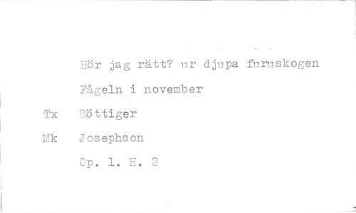 //// Hör jag rätt? ur djupa furuskogen Fågeln i november //// Tx Böttiger //// Mk Josephson //// Op. 1. H. 2 ////