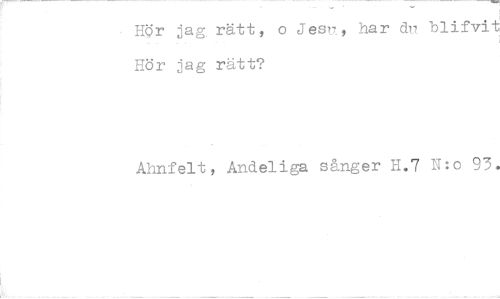 //// Hr jag rätt, o Jesv, har dn blifvit Hör jag rätt? //// Ahnfelt, Andeliga sånger H.7 N:o 93. ////