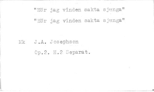 //// "Hör jag vinden sakta sjunga" //// "Hör jag vinden sakta sjunga" //// Mk J.A. Josephson Op.2. H.2 Separat. ////