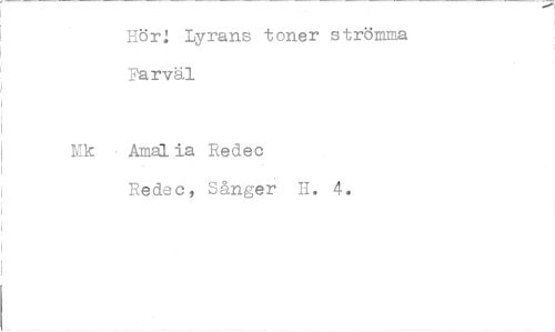 //// Hör; Lyrans toner strömma Farväl //// TM k Amal ia Redec //// Redec, Sånger H. 4. ////
