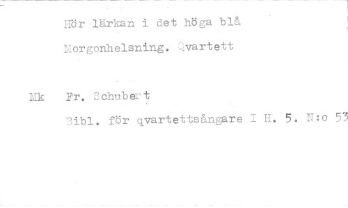 //// Hör lärkan i det höga blå Morgonhelsning. :vart ett //// Mk Fr. Schubert //// Bibi. för qvartettsångare I H. 5. N:o 53 ////