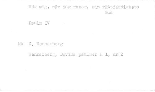 //// Hör mia, nör jag ropar, min rättfärdighets //// Gud //// Psalm IV //// Hk G. Wennerberg //// Wennerber, Davids psalmer H 1, nr 2 ////