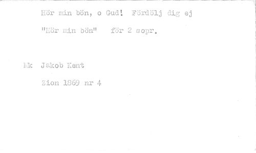 //// Hör min bön, o Gud Pördölj dig ej "Hör min bön" för 2 sopr. //// lik Jakob Kent Zion 1869 nr 4 ////