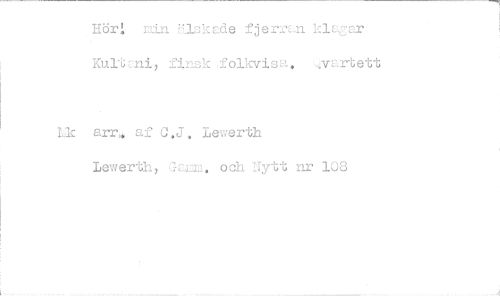 //// Hör:. n:Ln U.ckade fjerran klagar• Kulni, finsk _folkvisa. '.v.Yrtett //// Lk arr., af C ,J . Lewerth //// Lowerth, och 1:-ytt nr 1J3 ////