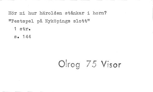 //// Hör ni hur härolden stånkar i horn? "Festspel på Nyköpings slott" //// 1 str. //// s. 144 //// 0!rog Visor ////