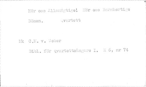 //// Hör oss 1-11stiget :ör oss Bswrherti:7e Bönen. ',,:vartett //// Uk v. Weber. //// Bibi. för vartettsångare 1. H 6, nr 74 ////