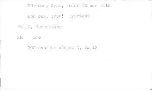 //// Eör oss Svea, moder åt oss rna Hör oss ',4vare //// Tx G, Wennerberg //// hac D:o //// 100 svensko &Inger 1, nr 12 ////