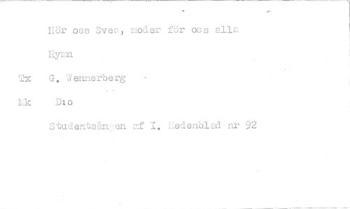 //// Hör oss Svea, moder för oss alla Hymn //// Tx G. Iennerberg //// Lic D:o //// Studentsänen af 1. Hedenblad nr 92 ////