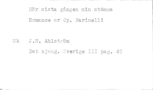 //// Hör sista gången min stämma //// Romance ur Op. Farinelli //// Mk Åhlström //// Det sjung. Sverige III pag. 49 ////