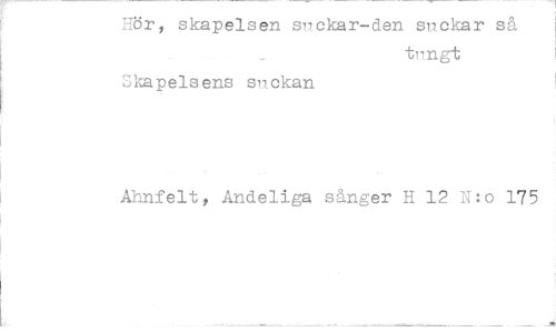 //// Hör, skapelsen suckar-den suckar så //// tungt //// kapelsens suckan //// Ahnfelt, Andeliga sånger H 12 N:o 175 ////