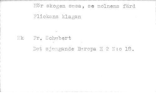 //// Hör skogen susa, se molnens färd Flickans klagan //// Hk Fr. Schubert //// Det sjungande Europa H 2 E:o 18. ////