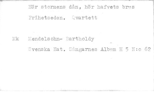 //// Hör stormens dån, hör hafvets brus Frihetseden. vartett //// kMendelsohn- nartholdy //// Svenska Hat, Sångarnes Album H 5 N:o 62 ////