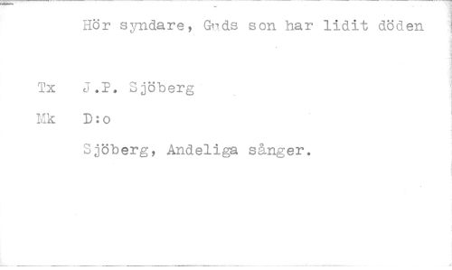//// Hör syndare, Grads son har lidit döden //// Tx J.F. Sjöberg //// Mk D:o //// Sjöberg, Andeliga sånger. ////