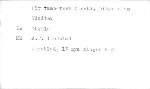 //// Hör tamburens klocka, ping: ping Visiter //// Tx Thekla //// Mk A.F. Lindblad //// Lindblad, 13 nya sånger H 2 ////