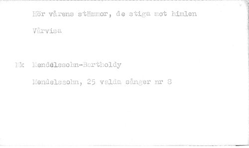 //// Hör vårens stUrnor, de stiga not himlen //// varv isa //// Hk llendelssohn-B2rtho1dy llendelssohn, 25 valda sånger nr 8 ////