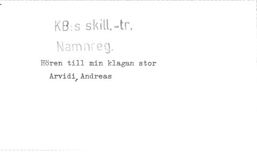 //// KB:s skitt.-tr. //// Namareg. //// Hören till min klagan stor Arvidi Andreas ////
