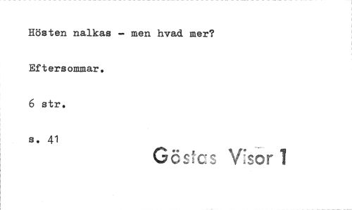 //// Hösten nalkas — men livad mer? Eftersommar. //// 6 str. //// s. 41 //// Gös.ks Visor 1 ////
