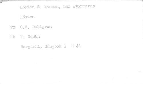 //// Hösten 1.1: kommen, hör stormarne Lösten //// fjyx S.Y. Dahlgren //// Udan //// Bergdell, Sångbok 1 73. 41 ////