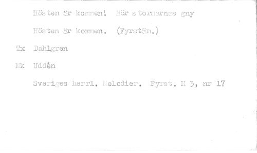 //// Hösten Mr kornen: Hör stor=rnas gny Hösten Kr kommen. (yrtöm.) //// Tx Dahlgren //// kk Udd6n //// Sveriges herrl. Lelodier. Fyrst. 11 3, nr 17 ////