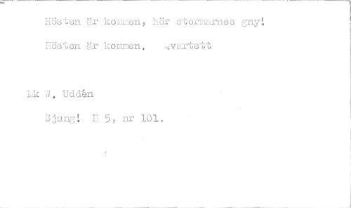 //// Hösten är koren, hör stornarnes gny: Eösten Kr kovnen. vartett //// Ijk -ä. Udden //// Sjung'', II 5, nr 101. ////