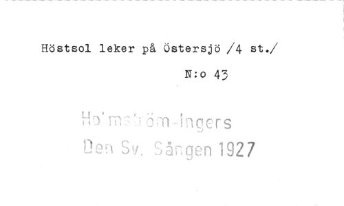//// Höstsol leker på Östersjö /4 st. //// /N:o 43 //// Der Sv, Sången 192 7 ////